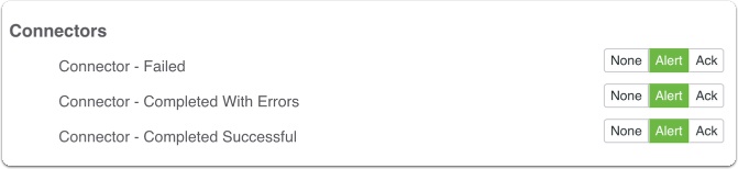 The 'Connectors' section of the alerts page isn't connector or task specific. It will send an alert if any connector task is successful or fails.